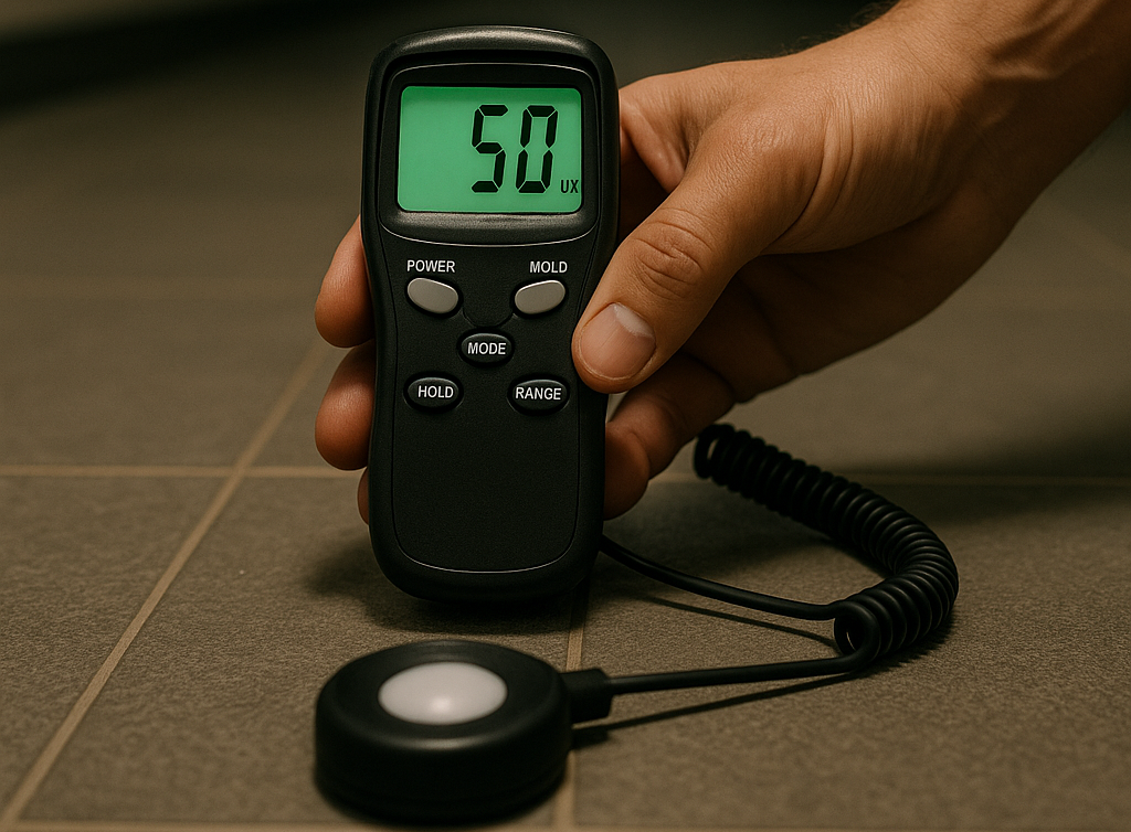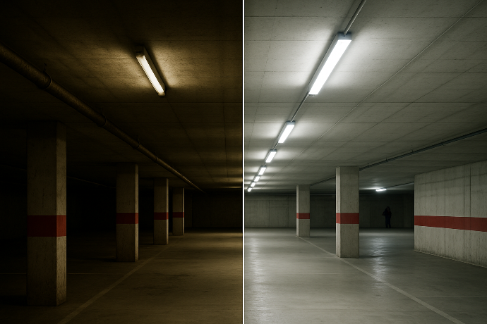 Un niveau d’éclairement de 50 lux est obligatoire dans les couloirs et cages d’escaliers. Nous réalisons des mesures précises et adaptons les luminaires pour garantir la conformité et la sécurité des occupants.