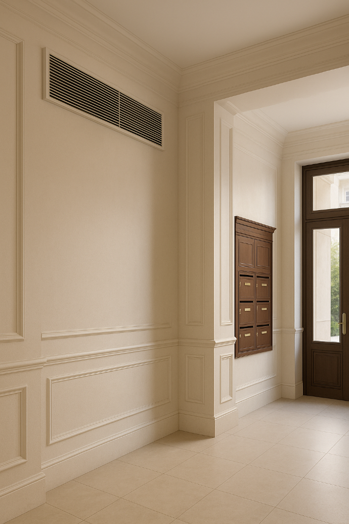 Kelvin & Watts conçoit et installe des systèmes de ventilation pour copropriétés et bâtiments professionnels. Nous assurons le remplacement ou l’installation de nouveaux systèmes, aussi bien dans le cadre de rénovations, de mises en conformité que de nouvelles constructions.